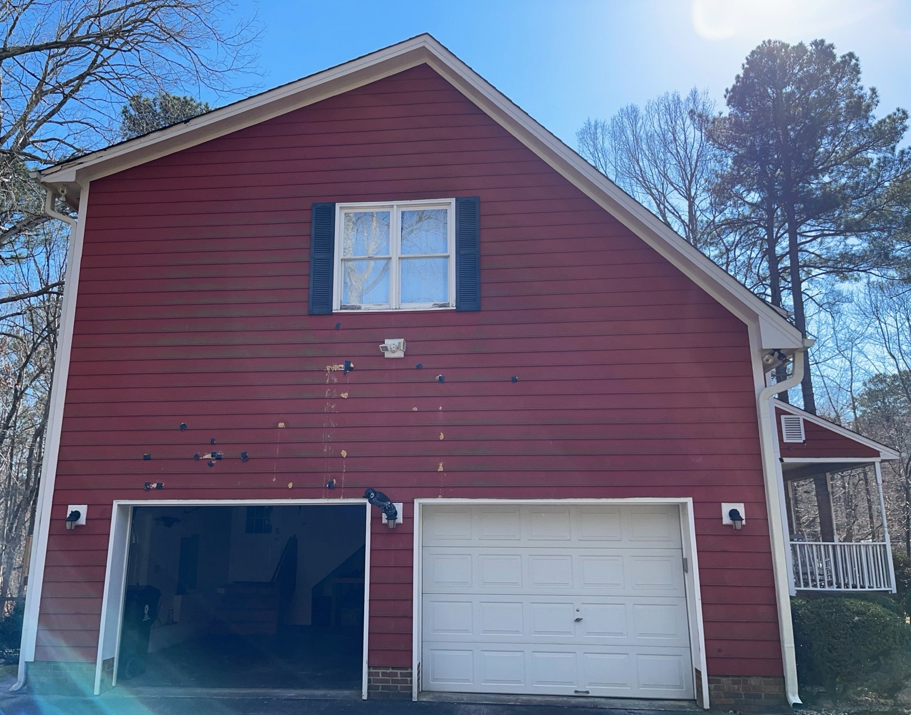 The result? A stunning makeover from bright red siding to a clean, classic white exterior. With improved durability, curb appeal, and peace of mind, this Raleigh home is now fully protected — and woodpecker-proof!